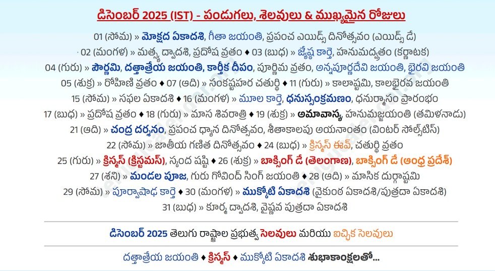 “Andhra Pradesh Telugu Calendar 2025 December”